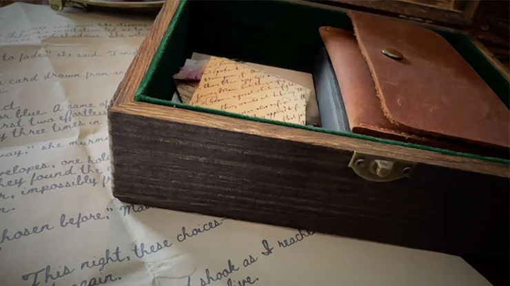 Includes full video tutorial, plus the handcrafted wooden box (with felt lining), the poker chips in the soft leather case, custom printed game cards in black box, photo, prediction letter and the envelopes with wax seals and the flower, all ready to perform immediately!